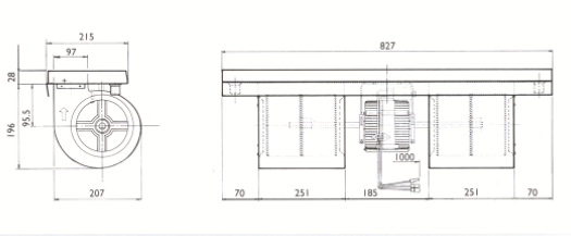 Completo com motor de 3, 4 ou 6 velocidades e um ventilador centrífugo para alcances de até 5250m3/h